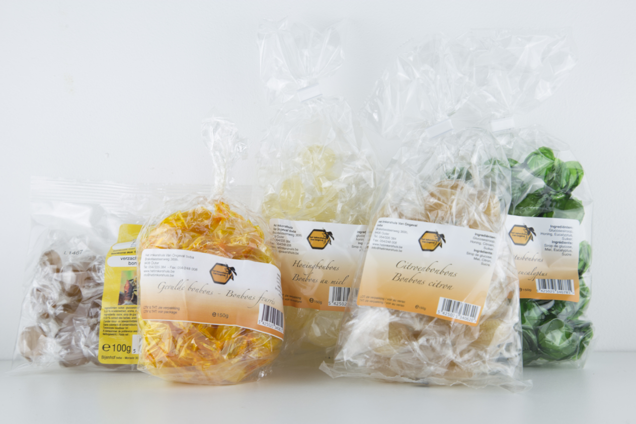 Honingbonbons met extra honing in de kern van de bonbon.